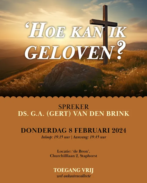 Geloofsavonden Staphorst een bijeenkomst in kerkgebouw de Bron aan de Churchilllaan 2 in Staphorst. De avond gaat door met een andere spreker dan de eerder aangekondigde, namelijk Marcel Vroegop. De toegang is vrij, wel zal een collecte worden gehouden voor de onkosten.