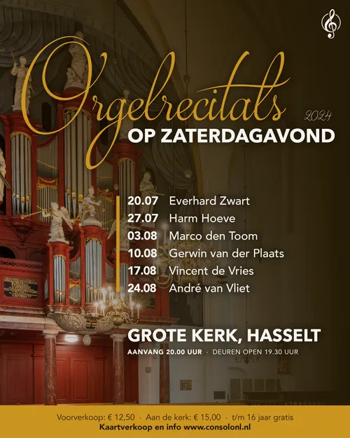 in de serie Orgelrecitals in de Grote Kerk van Hasselt verzorgen. Kaarten zijn met korting te koop via de website www.consolonl.nl.