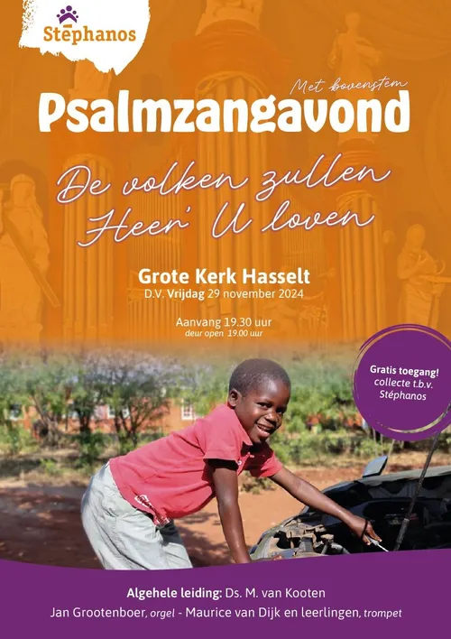 ten bate van stichting Stéphanos voor haar werkzaamheden in Malawi en Zambia. De organisatie en musici zien uit naar een prachtige Psalmzangavond en danken alle betrokkenen bij voorbaat voor hun bijdrage. Iedereen is van harte welkom. De zangavond vindt dit jaar op dus vrijdagavond plaats.