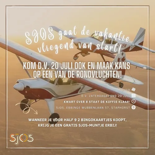 Op D.V. zaterdagavond 20 juli 2024 houdt SJOS een Bingo-avond aan de Ebbinge Wubbenlaan 57 in Staphorst. Voor meer informatie zie onderstaande affiche.