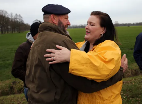 Een bijzonder moment woensdagmiddag in Staphorst. Susan Willis (54) bezocht samen met haar zoon Willis en haar dochter Maggie het monumentje dat vorig jaar werd geplaatst om het neerstorten van een Amerikaanse bommenwerper op deze plek op 6 maart 1944 te markeren. Haar vader Alan Willis was de copiloot. Hij overleefde.