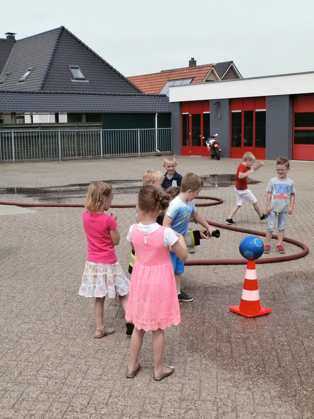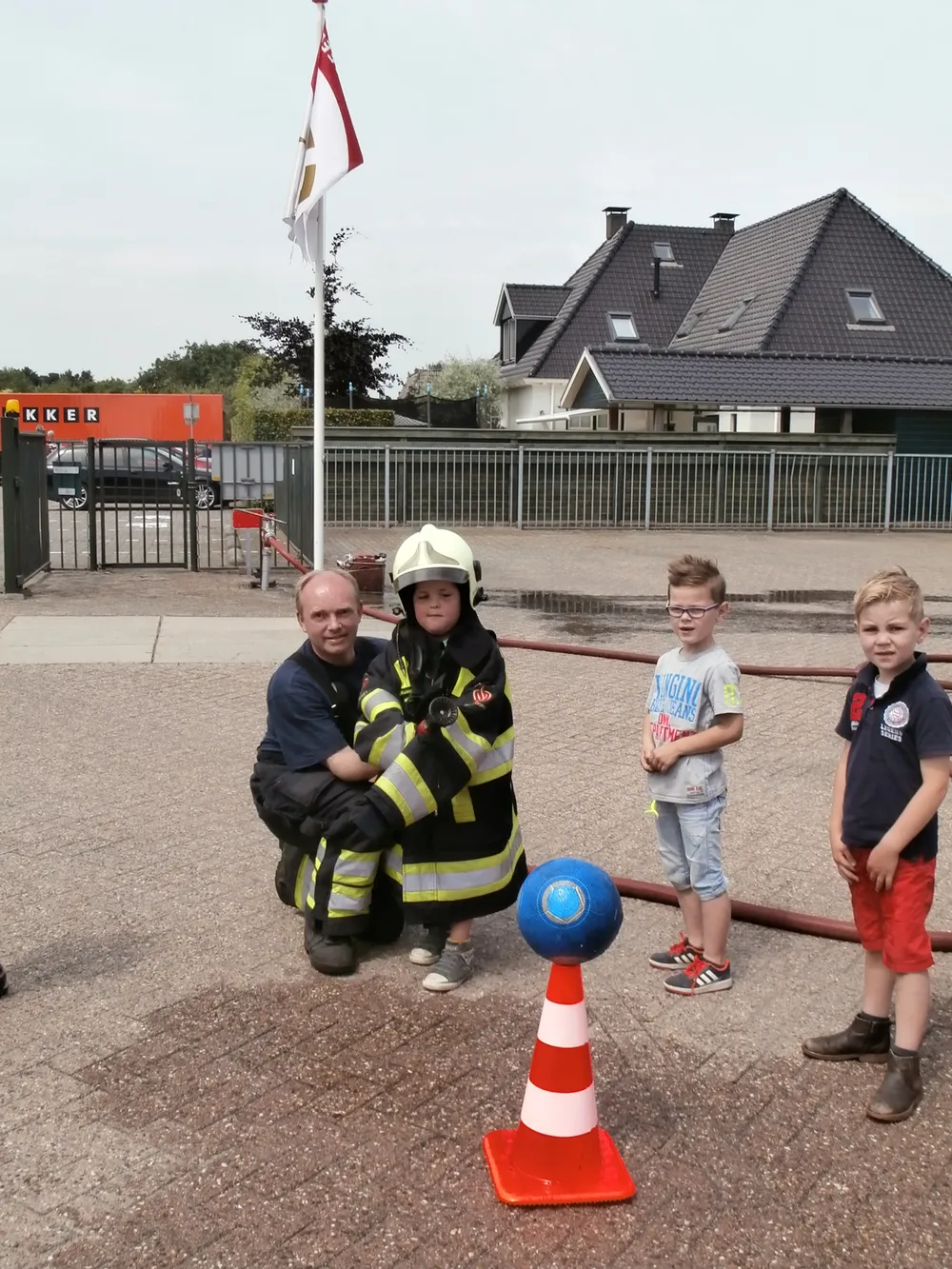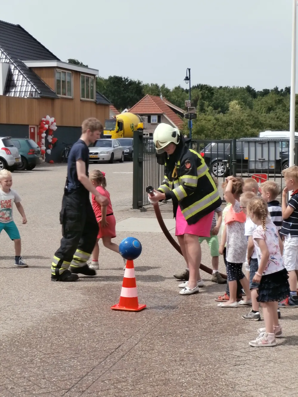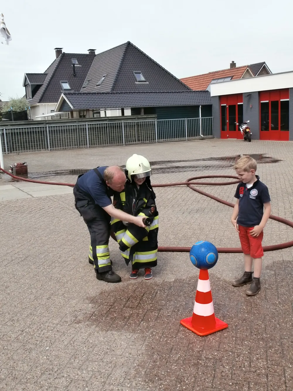 Brandweerman Erik Mussche gaf samen met een collega onderwijs aan de kleuters over het werk van de brandweer. Er werd ook geoefend in het hanteren van de brandspuit. De kazerne en de brandweerauto werden vervolgens van binnen bekeken.