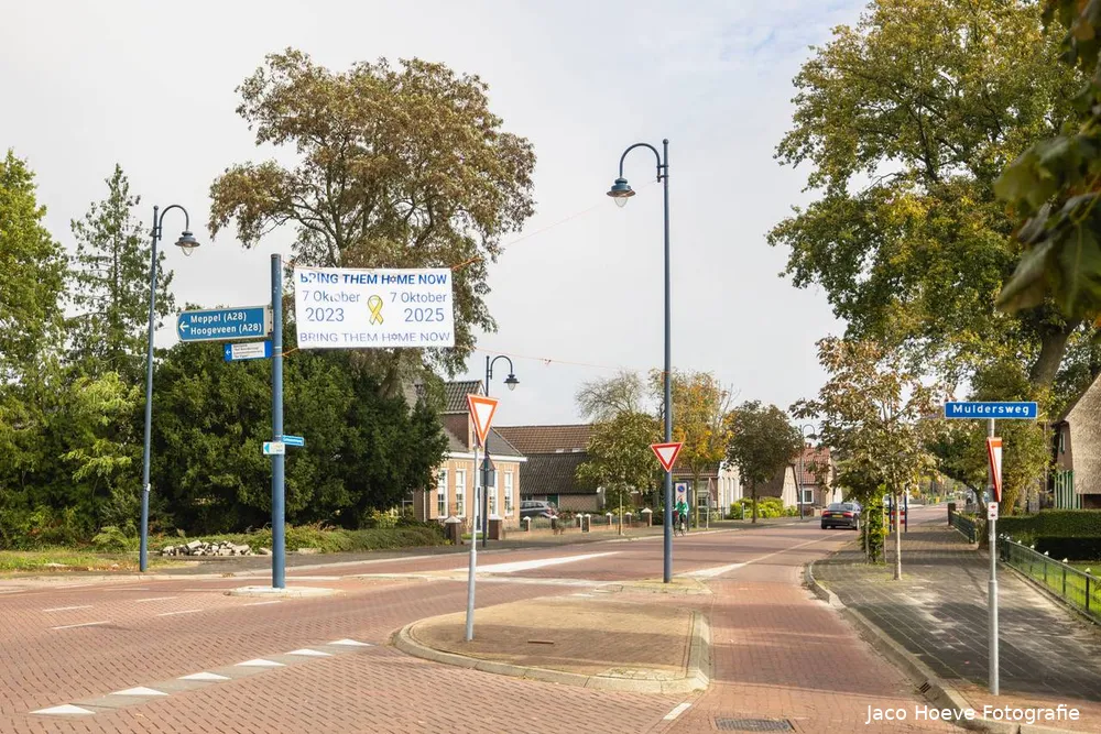 Her en der door de hele gemeente Staphorst, langs de hoofdwegen en belangrijke kruispunten en op het marktplein bij het gemeentehuis hangen banieren met 7 oktober 2023 - 7 oktober 2025 "Bring Them Home Now" waarbij de O van home als Davidsster wordt weergegeven. Centraal een geel lint als betuiging van solidariteit met de Israëlische gijzelaars en een oproep tot hun vrijlating.