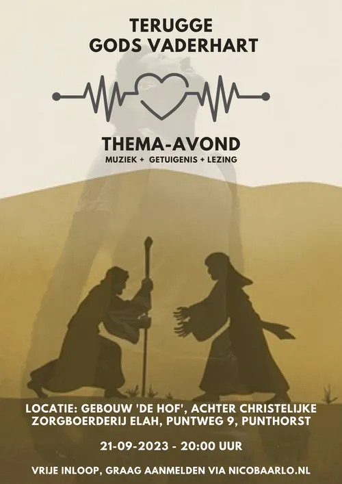 Op donderdagavond 21 september 2023 om 20.00 uur houdt Nico Brand een thema-avond in gebouw ‘de Hof’ aan de Puntweg 9 in Punthorst (achter christelijke zorgboerderij Elah). Er is een vrije inloop, graag