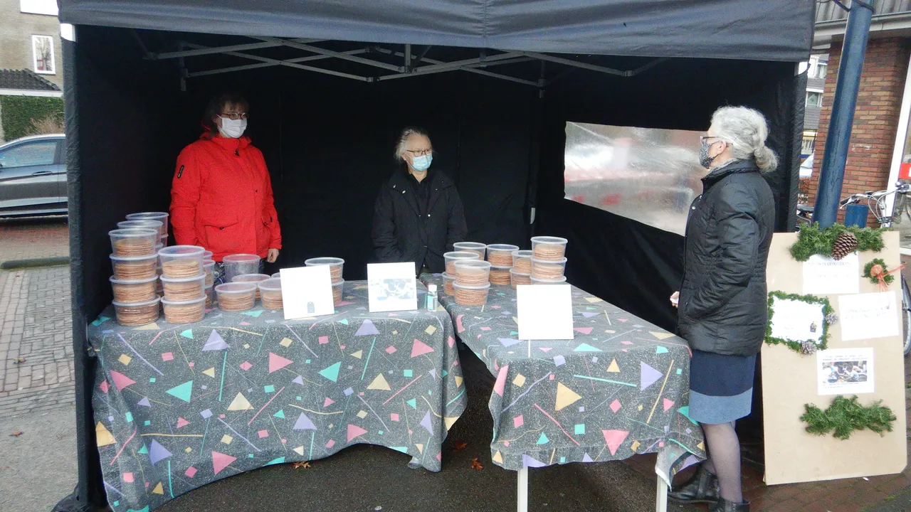 Gekleed in winterjas en voorzien van een mondkapje verkochten Aaltje Kok-Boldewijn en Janny Troost in vlot tempo de doorzichtige dozen met 25 of 50 stuks. Inclusief nabestellingen die later nog aan huis afgehaald konden worden heeft de actie ruim 1000 euro opgebracht voor stichting Jafet.