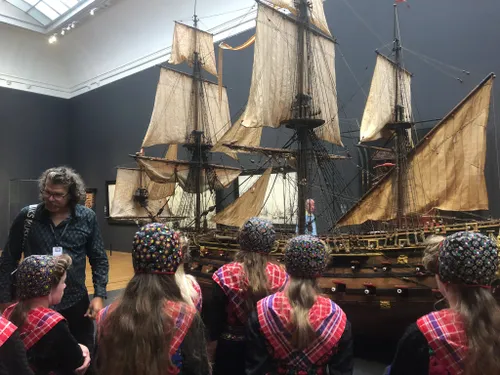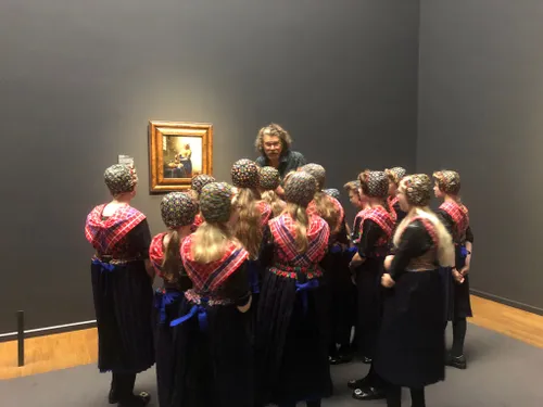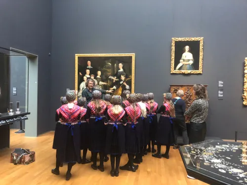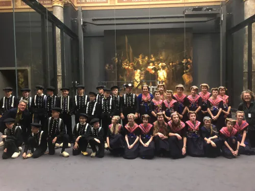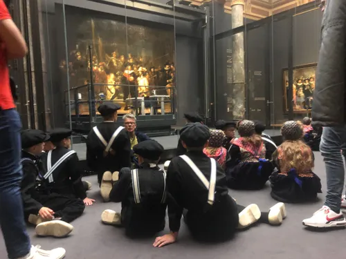 In het Rijksmuseum zijn ze met de hele groep in klederdracht op de foto gegaan voor de Nachtwacht van Rembrandt. Groep 8 had voor deze gelegenheid Staphorster klederdracht aangetrokken. Beide groepen hebben een rondleiding gehad door het museum.